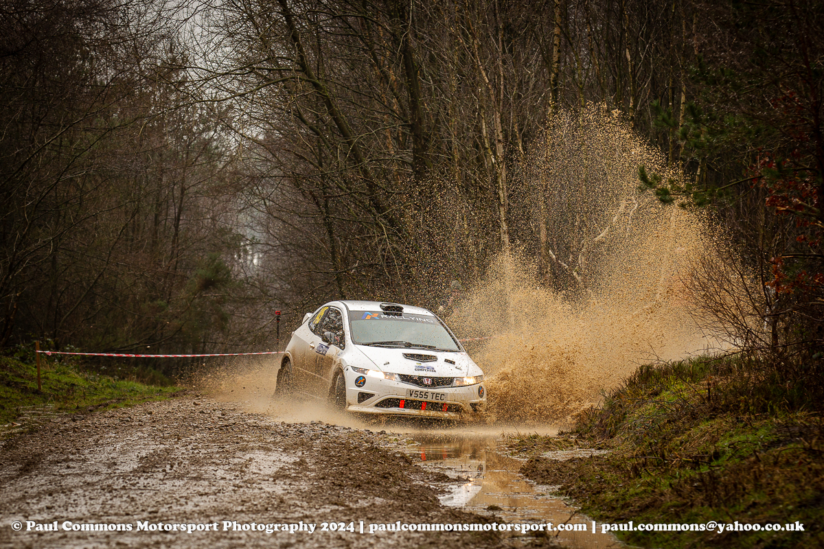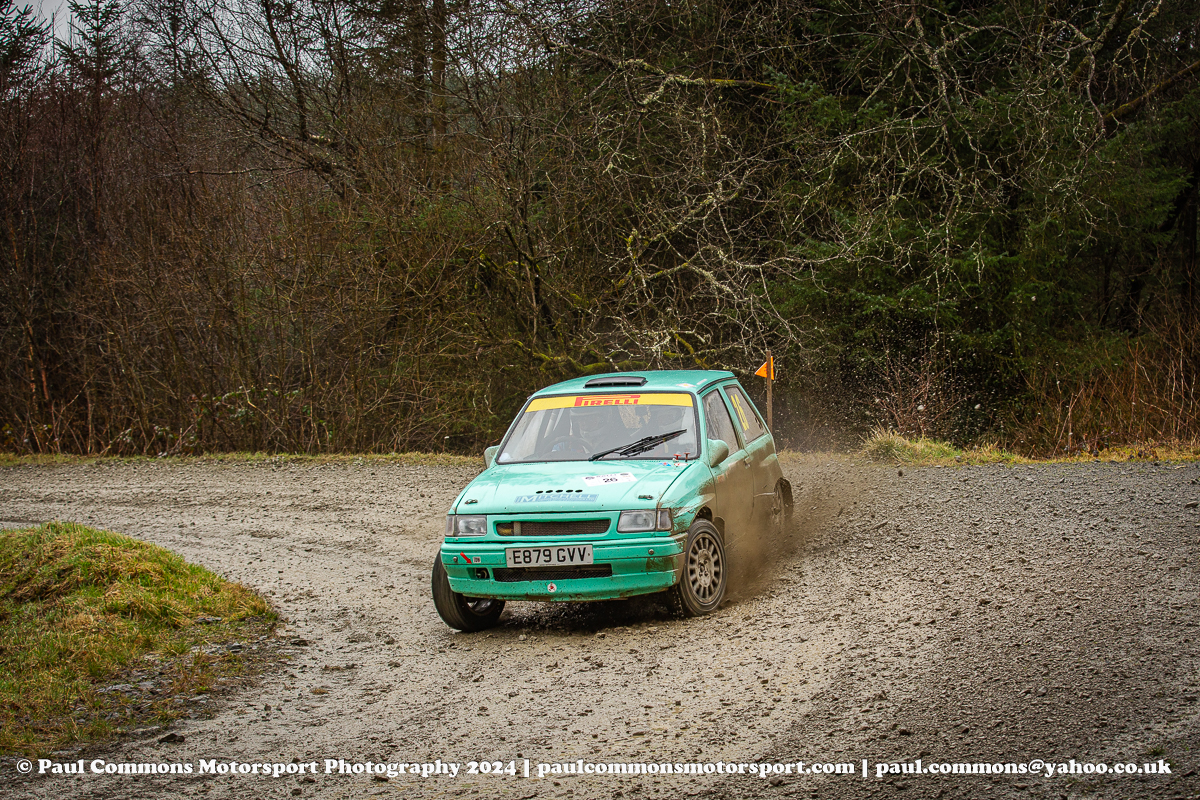Matthew Hirst and Declan Dear dominated the interclub event in their Skoda Fabia R5 only to be awarded a 2 minute penalty for an early check in to SS6. Instead Elliot Payne and Patrick Walsh would go on to claim a 6 second rally victory aboard their Ford Fiesta Rally2, themselves just holding off a late charge from the Skoda Fabia RS Rally2 of Tom Williams and Michael Gilbey. Such was Hirst’s pace however that despite the 2 minute penalty he and Dear would still end the day just 10 seconds from the podium positions and only 57 seconds from the lead!