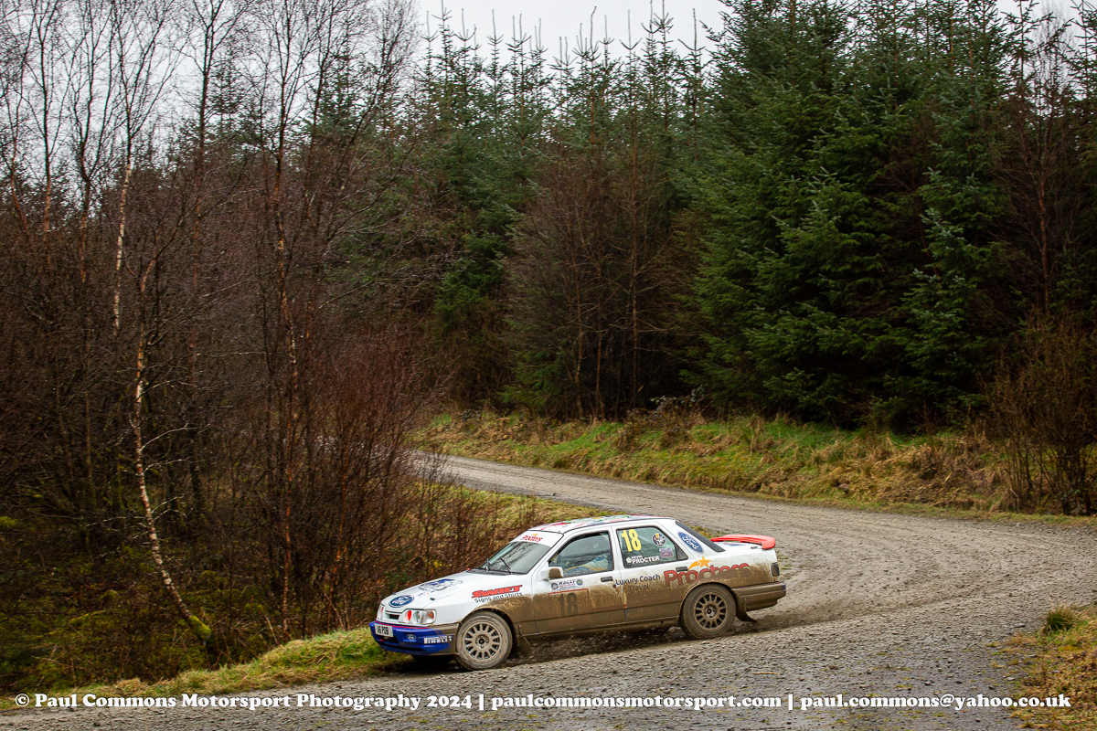 Using the event as a test for the upcoming biennial Roger Albert Clark Rally, Pryce and co-driver Dale Furniss were on the pace from the off, setting ridiculously quick times through the opening 2 tests to storm into an incredible 26 second lead after just 12 competitive miles. Another 2 fastest stage times would follow leaving the Welsh pairing sitting on a monumental 41 second National Rally lead at the mid event service!