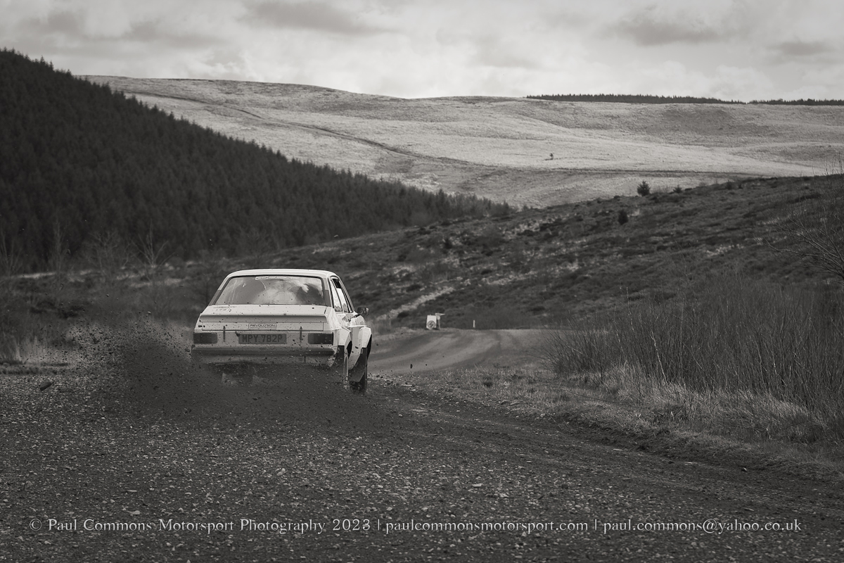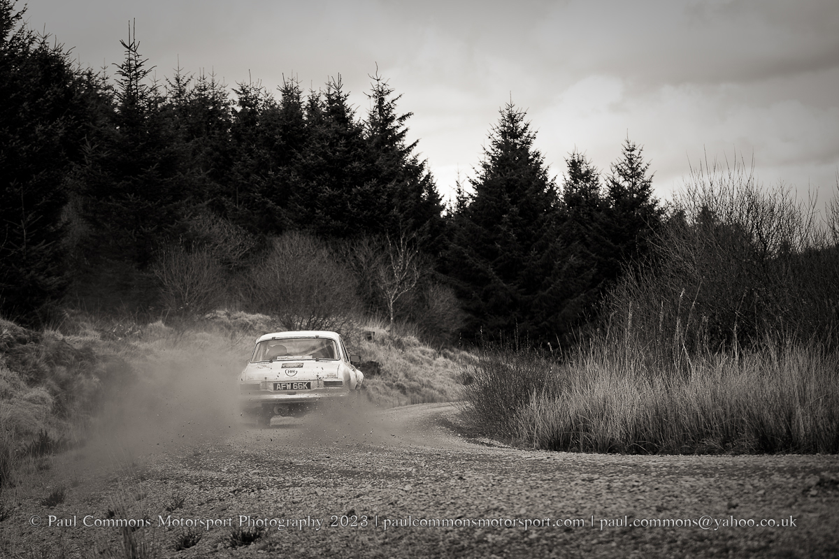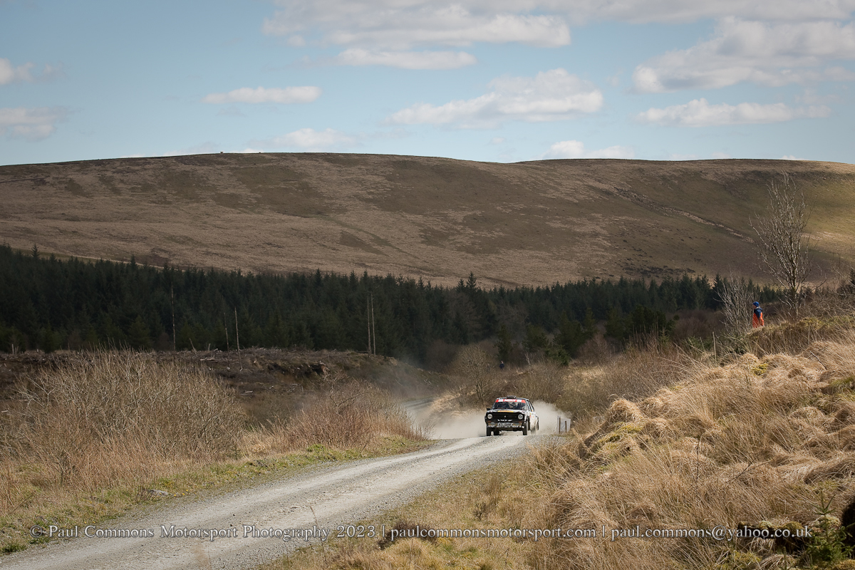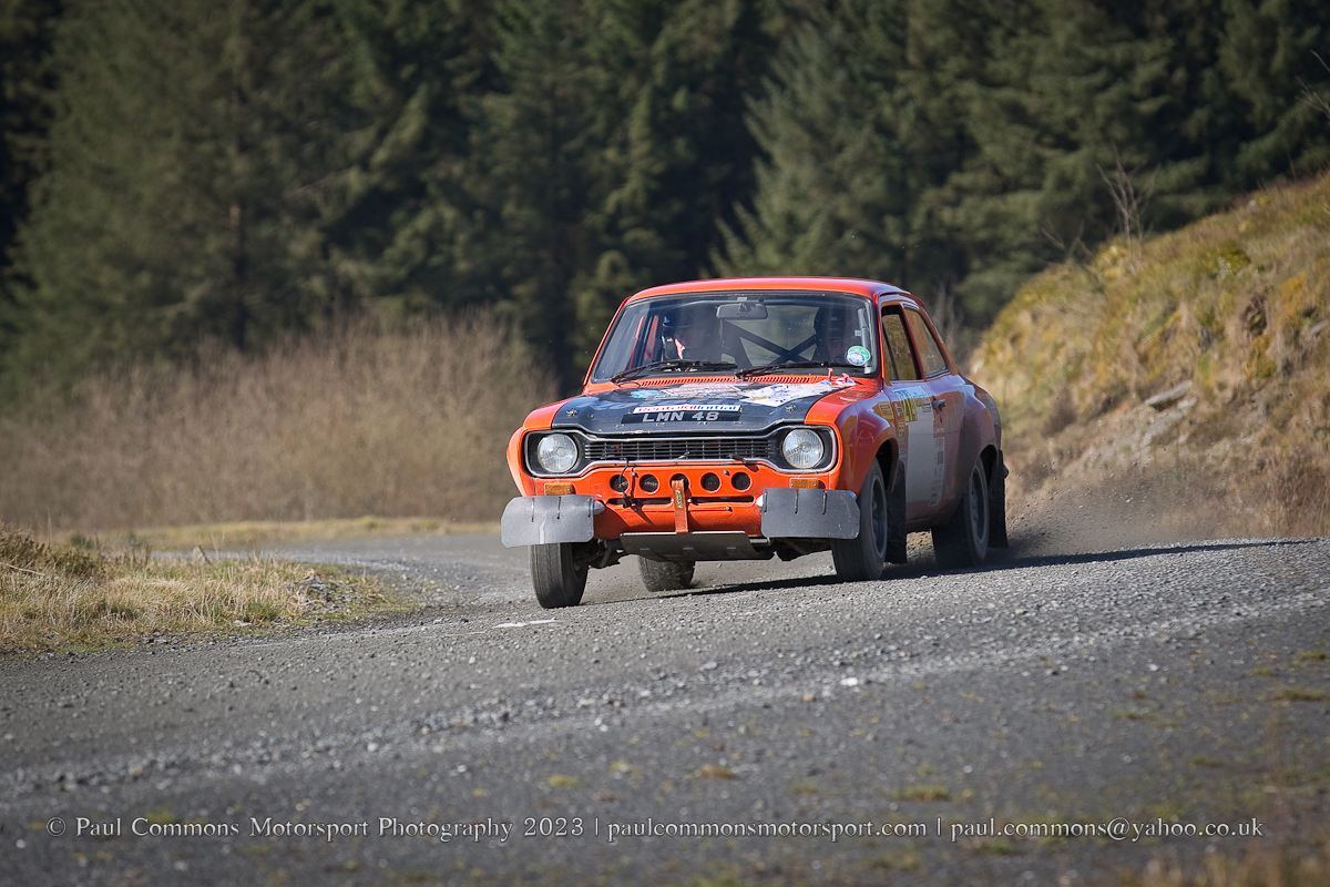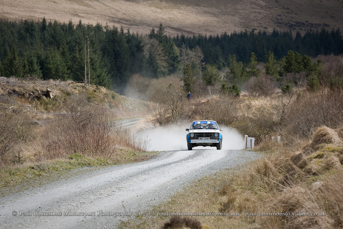 Gough and Morris, a new combination for 2023, seem to be really gelling of late and looked to be well on their way to category victory after matching the time of Elliott on the first stage of the afternoon loop (Myherin Main).  A slow time in the second running of Hafren Sweet Lamb however saw the Ford Escort duo’s lead slashed to just 2 seconds with 1 stage remaining.  And with Elliot buoyed by a time 13 seconds quicker than his morning attempt could not quite hold onto their slender lead through the 4.69 miles of Cwmysgawen 2.