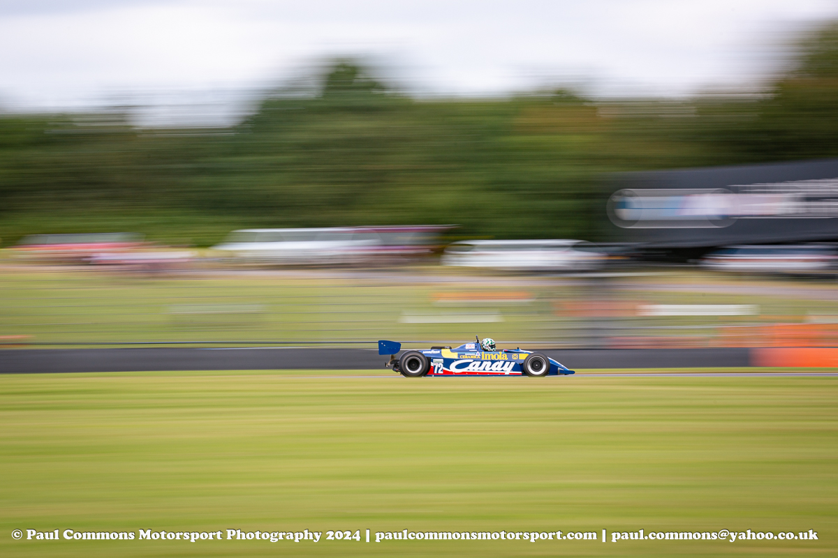 By far the highlight of the day though were two fantastic races for the Pre-85 Formula One cars. 2024 Champion Matthew Wrigley had qualified his 1982 Tyrrell 011 on pole position and would have been hot favourite for race 1 victory had it not been for losing third gear. Yutaka Toriba, in his Williams FW07C, would take full advantage of the Tyrrell’s ailment and find himself in the lead by the end of lap 1 with Mike Cantillon following suit after a mid-race safety car.