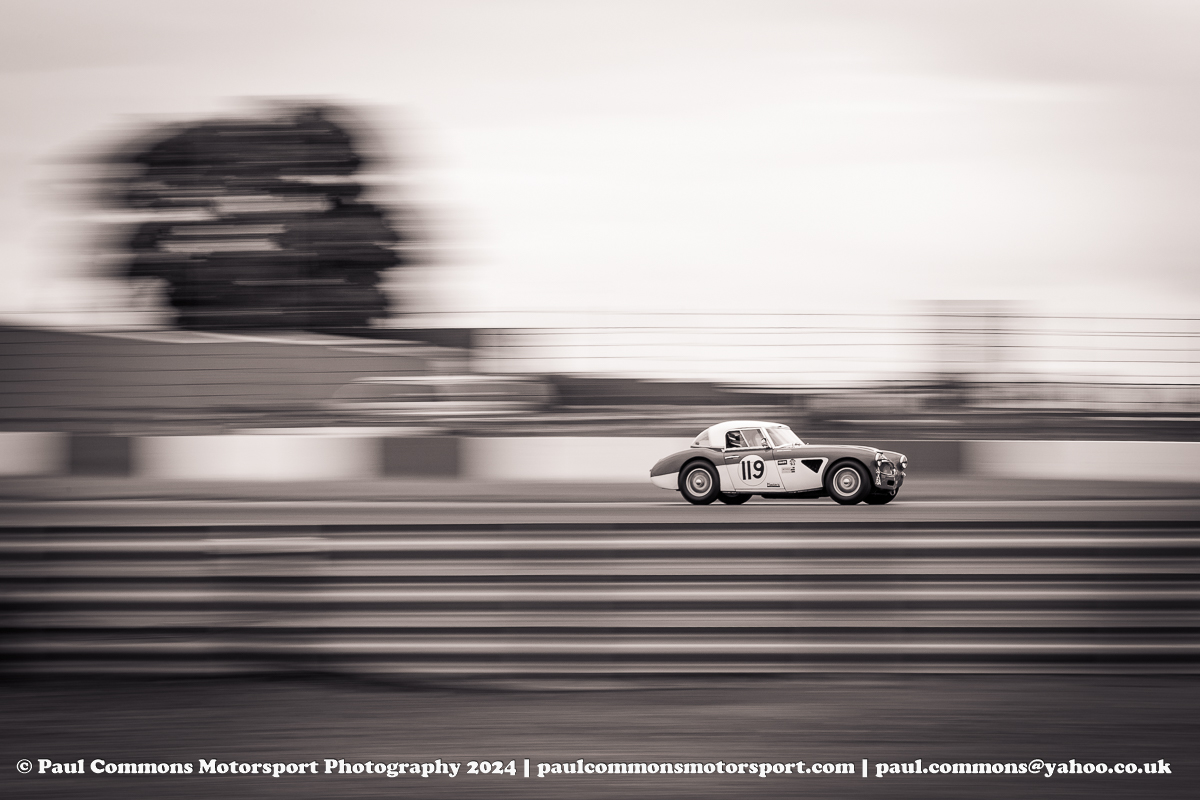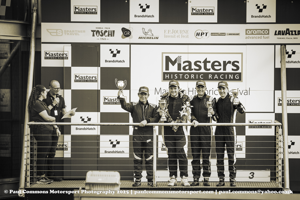 The Masters Sports Car Legends race did however feature a great opening stint battle between the McLaren M1B of John Spiers and Lola T70 MK2 Spyder of Andy Newall. Spiers was just about able to keep Newall at bay but Greensall would soon disappear up the road once stepping into the hot seat of the Chevrolet powered brute. Car owner Steve Seaman meanwhile was not able to match the speed of Newall and would soon drop back in the Lola T70, leaving Georg Kjallgren aboard the Daren MK2 to claim 2nd and Keith Ahlers and James Billy Bellinger to round out the podium in their glorious Cooper Monaco King Cobra.