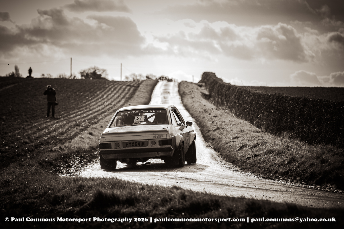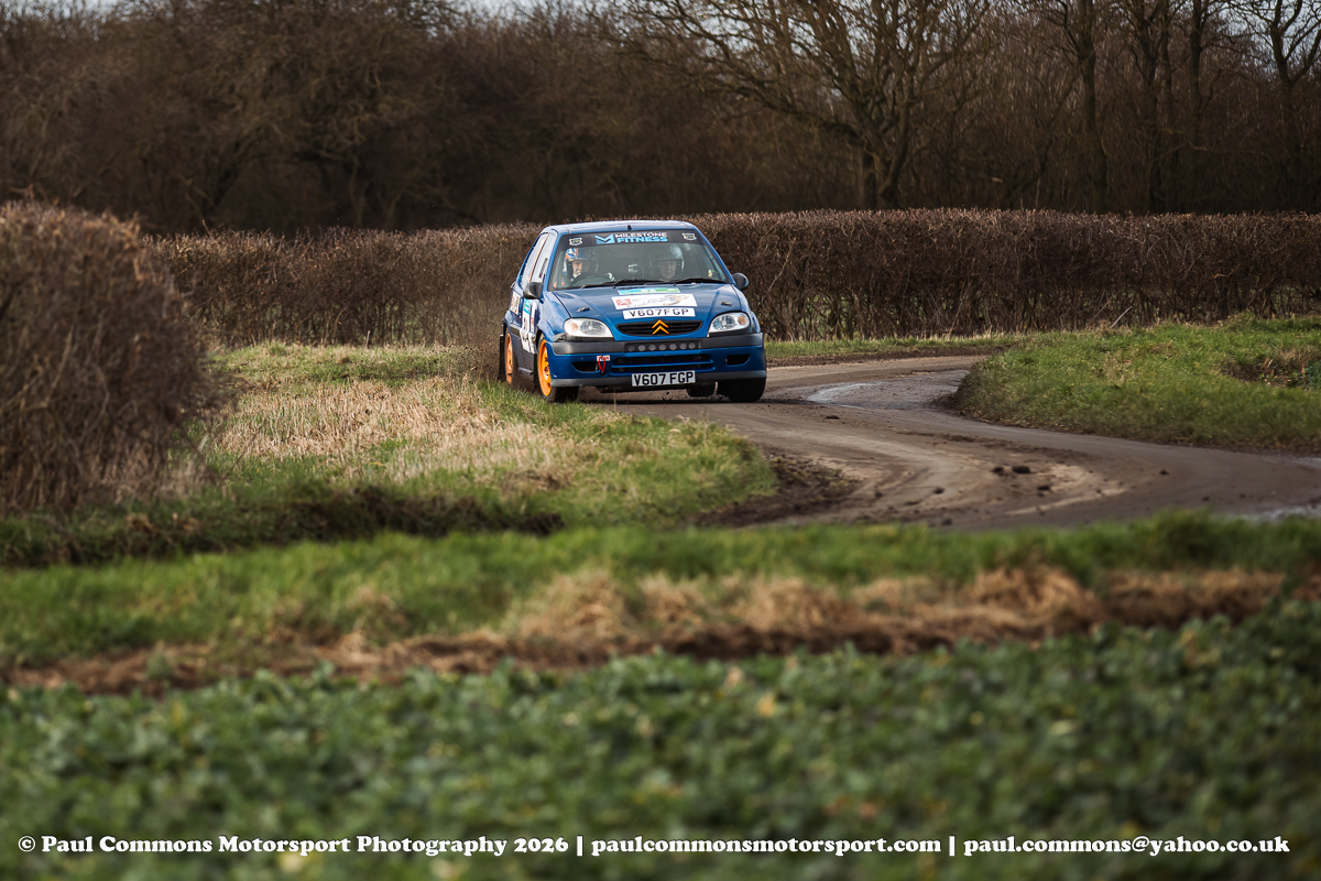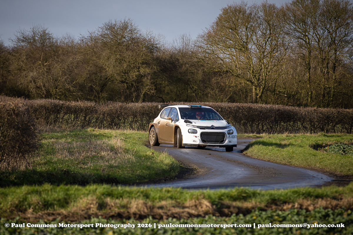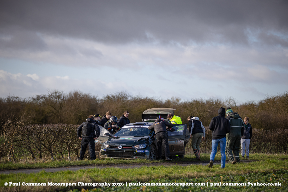 Overnight / early morning rain had made for tricky driving conditions on Sunday morning and, despite taking the lead with fastest time on SS5 (Seaton), it would be Ford and Shanks who were caught out by the aforementioned traction limiting mud strewn lanes; a trip through a field on Stage 6 (Rise) costing the Citroen pairing almost 10 seconds.