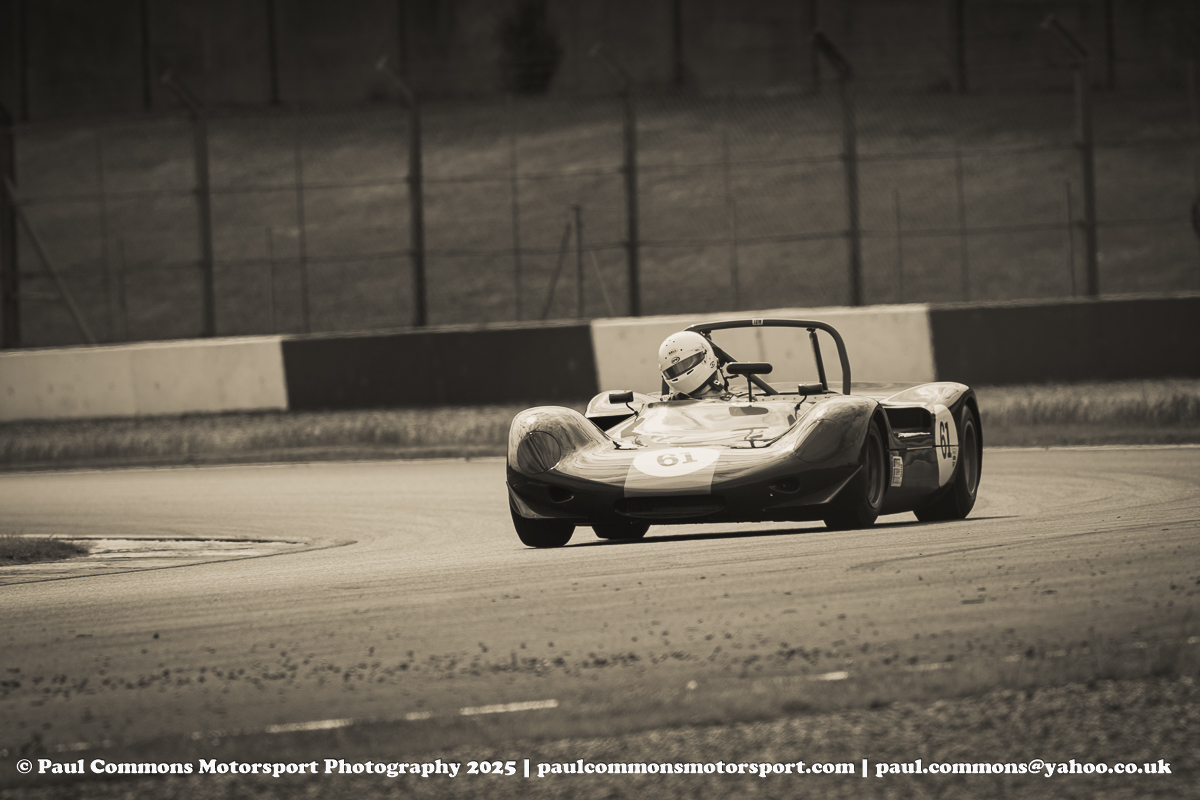 This would leave the Lotus 23B of Andrew Hibberd in pole position to take victory having earlier made his way past Russell Paterson’s Ginetta. And, with Paterson not able to match the pace of son Elliot, Hibberd was able to cruise to a 38 second victory; in turn taking a rather unexpected, but well received, share of the overall championship title.