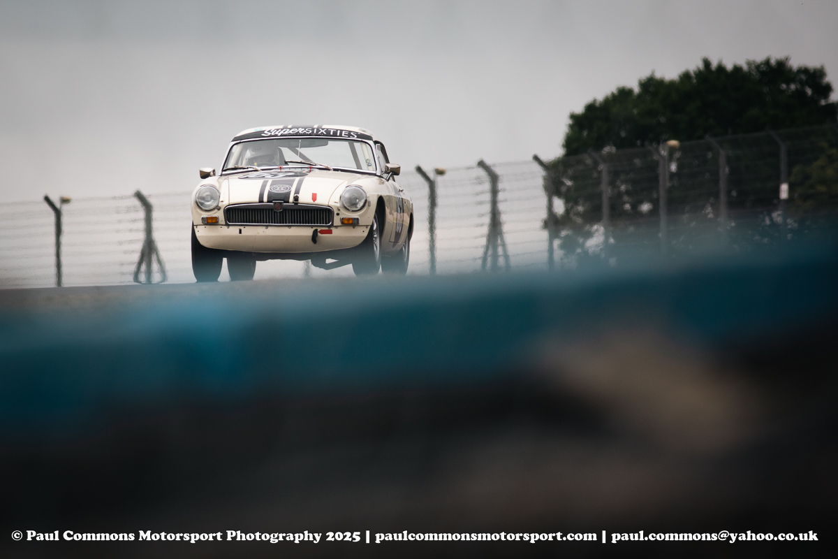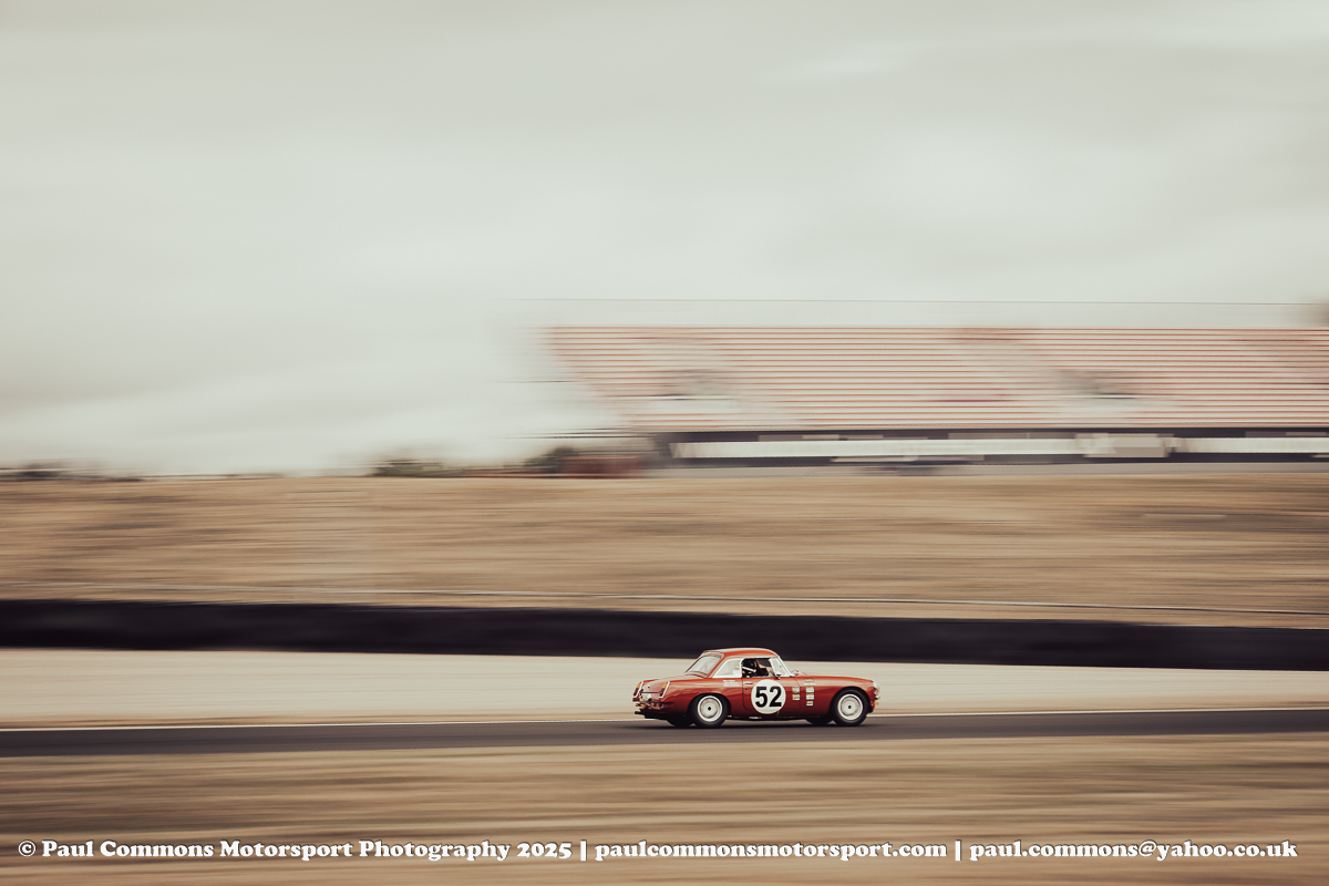 Mike Thorne would complement class victory in the GT & Sports Car Cup with second in what proved to be the final event of the day after a scary collision between the Mustang of Jerry Bailey and Gilbern GT of Mary Bell and David Smith. Bailey had been hunting down the final podium position in the closing stages before his charge was cut short. Thankfully both drivers were able to walk away from the scene but the subsequent barrier damage was enough to bring an early end to the day’s proceedings and push the planned Mini Miglia race back to the morning of day 2.